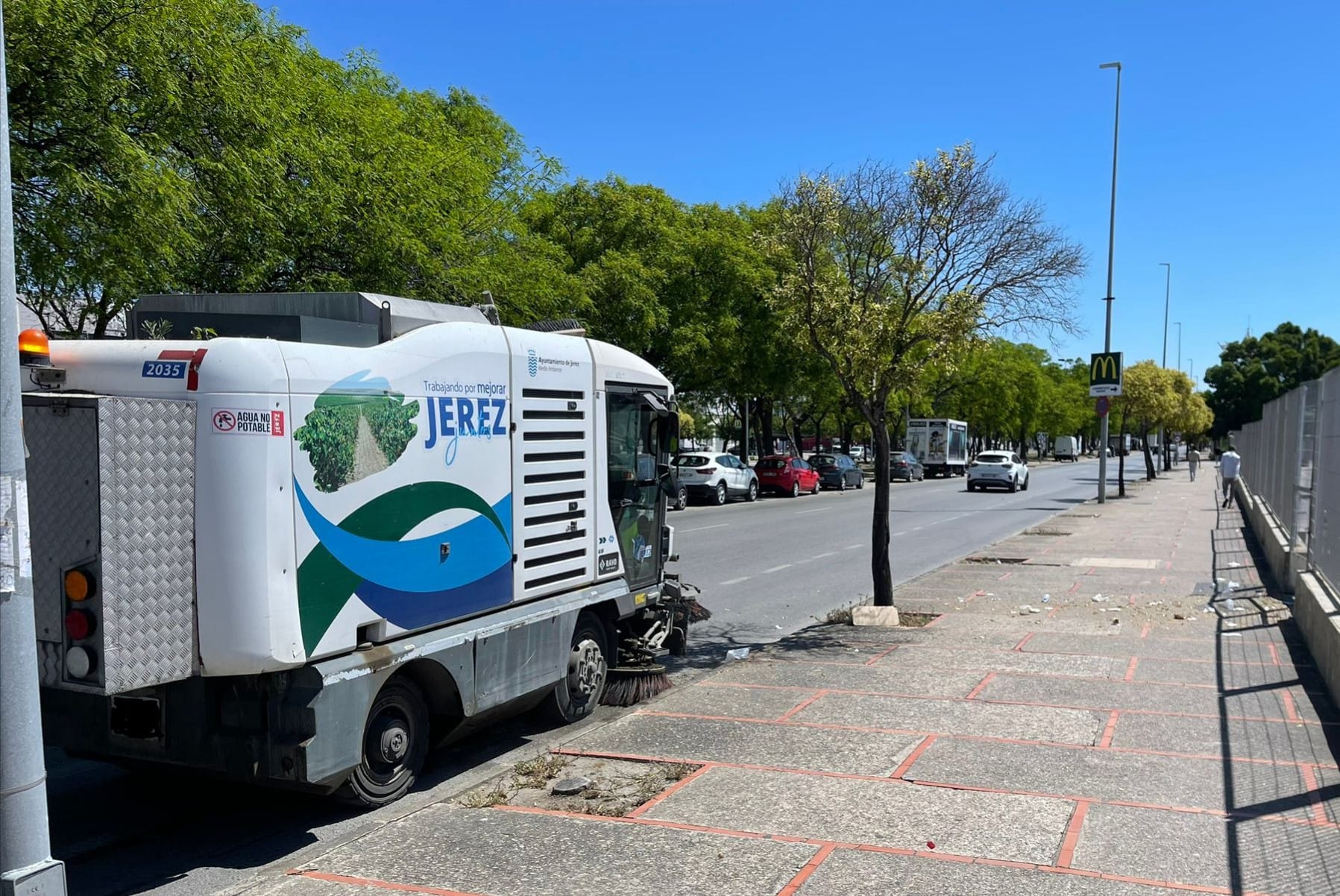 Trabajadores de la limpieza viaria, trabajando en Avenida de Europa.